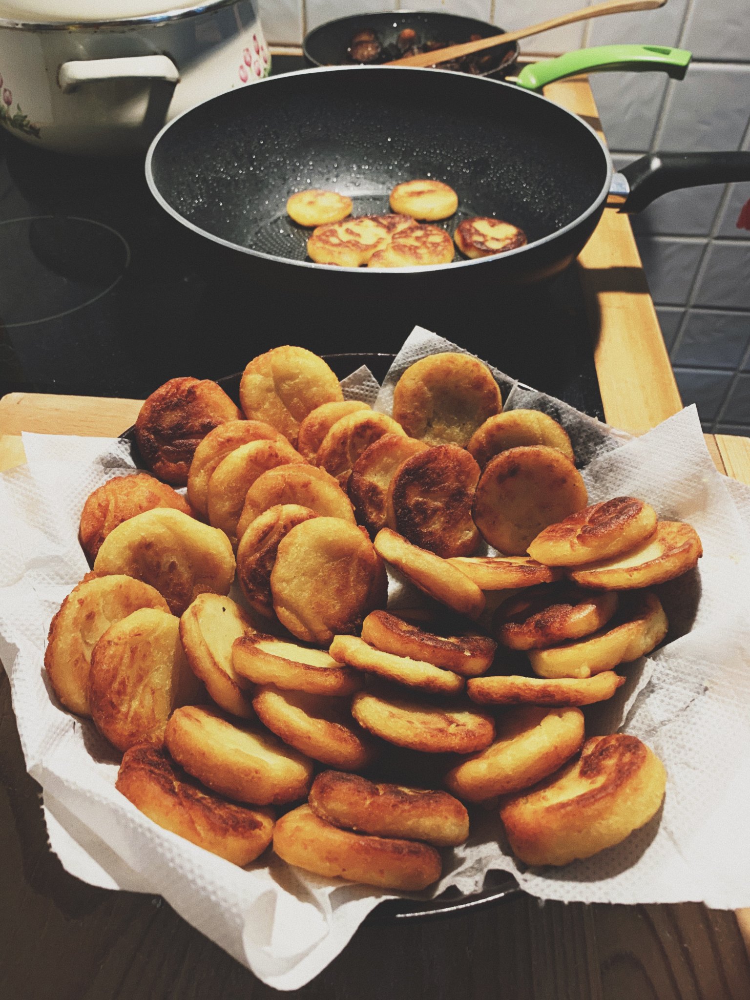 Elkészítése: krumplit főzünk, krumplinyomóval összetörjük, sózzuk, liszttel összegyúrjuk, forró olajban kisütjük.